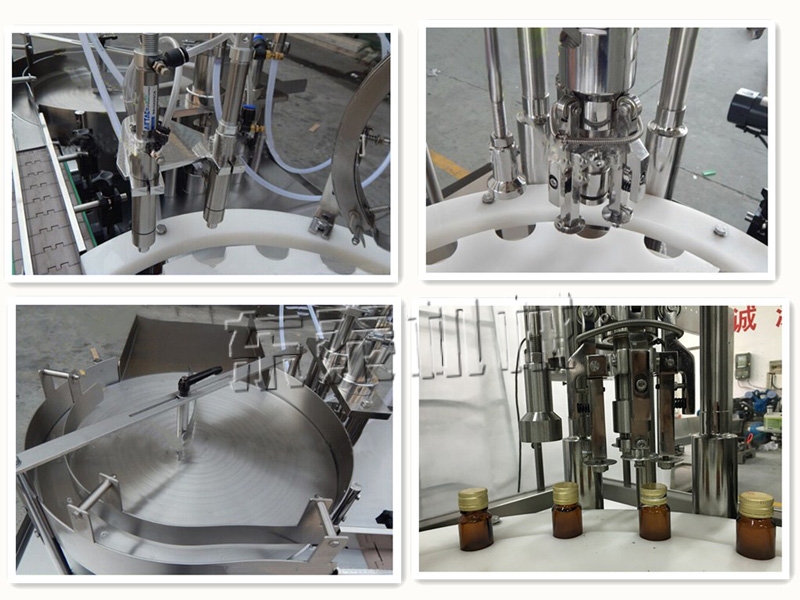 3、小瓶藥液灌裝旋蓋機灌裝系統(tǒng)具有吸氣功能,可防止液滴飛