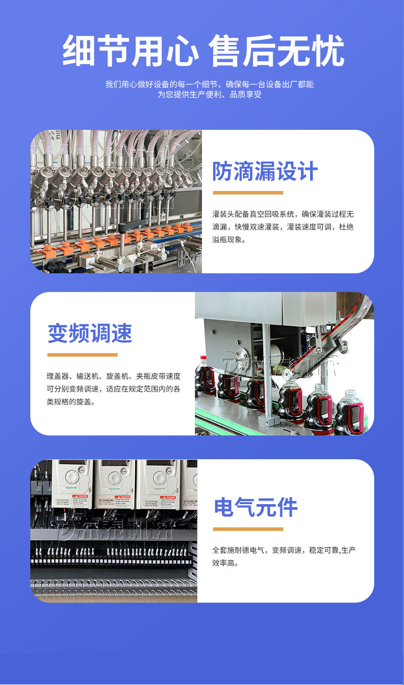 3.灌裝閥采用優(yōu)質(zhì)灌裝閥,下料速度快,灌裝量精準(zhǔn),且無滴漏現(xiàn)象產(chǎn)生